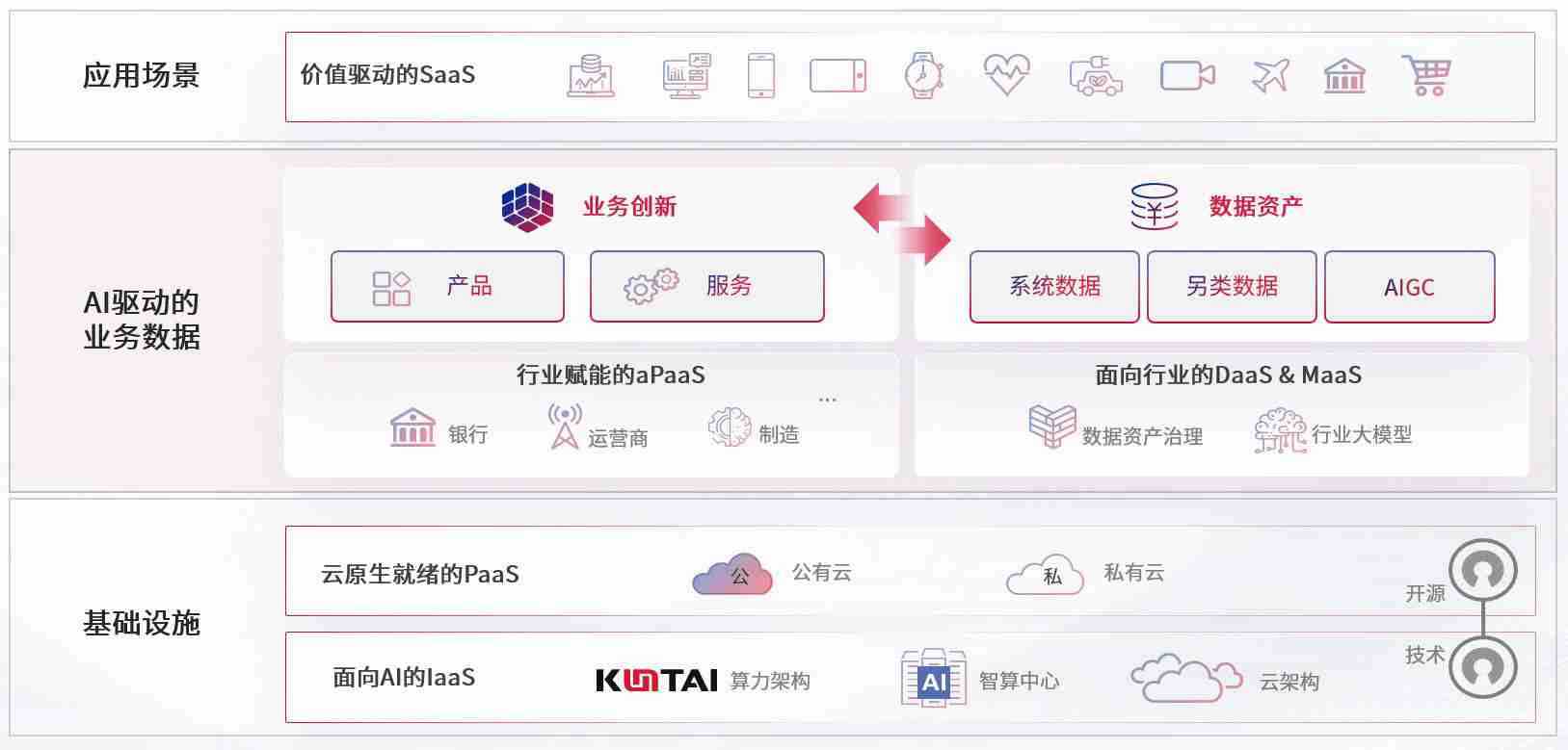 数字时代,,,围绕企业数字化转型的关键要素,,,,亚洲必赢数码开创性的提出数云融合战略和技术体系框架,,,着力在云原生、、、、数字原生、、AI原生和信创产业上架构产品和服务能力,,为处在不同数字化转型阶段的快消零售、、汽车、、、金融、、、、医疗、、、政企、、、、教育、、、、运营商等行业客户提供泛在的敏捷IT能力和融合的数据驱动能力,,,构建跨界融合创新的数字业务场景和新业务模式,,助力企业级客户建立面向未来的核心能力和竞争优势,,全面推动社会的数字化、、智能化转型升级。。。。